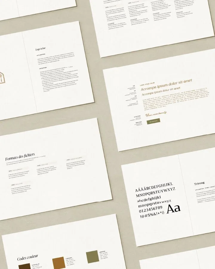 Tu reçois une charte graphique complète, imaginée comme un véritable guide pour utiliser ton identité avec cohérence et assurance. Je te transmets également un dossier soigneusement organisé, regroupant tous les fichiers aux formats print et web, pour que tu puisses accéder facilement à chaque déclinaison, au bon moment.